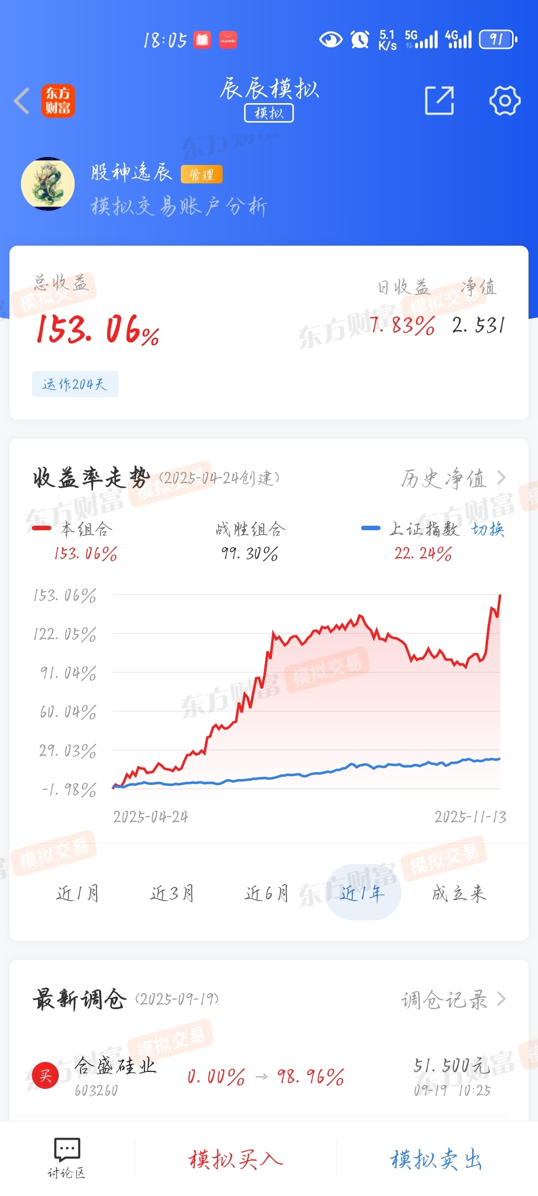 天天盯盘亏的裤衩都不剩,模拟没怎么管反而战绩很好我发现【组合:辰辰模拟】这个组合,总收益为153.06%,共7人正在关注该组合,推荐关注。