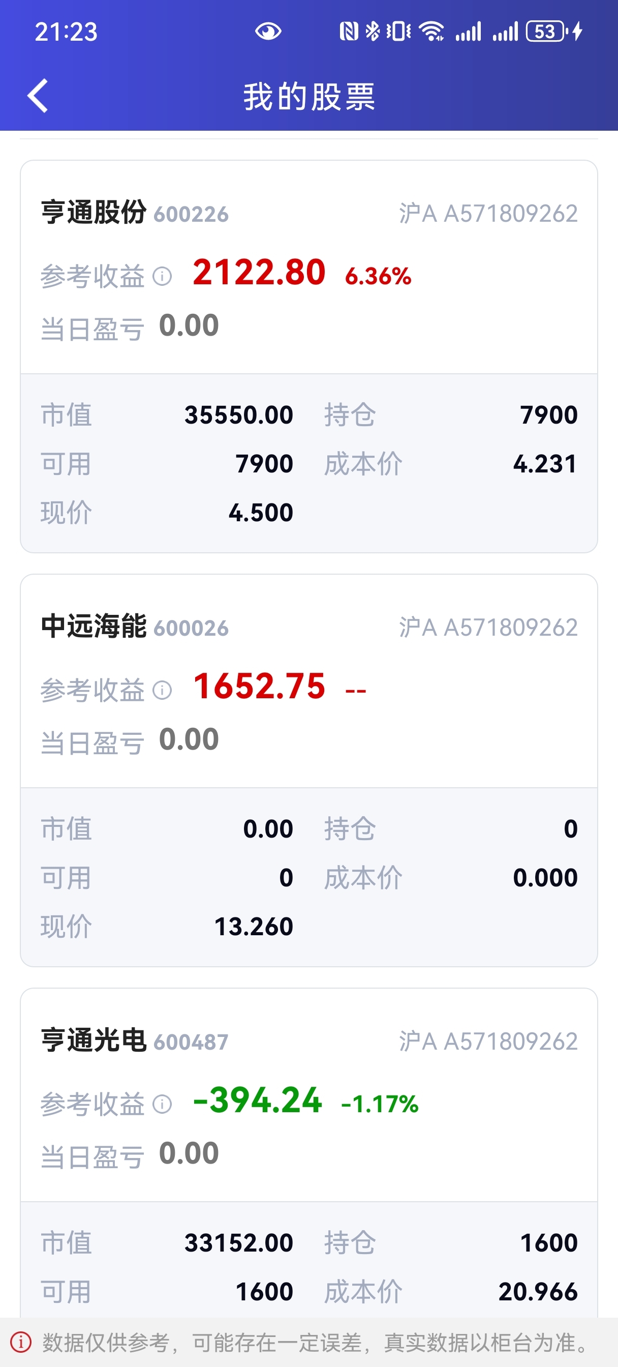 炒股第二天,有赔有赚昨日进入股市,投入十万,下午分别买入亨通光电,亨通股份,中远