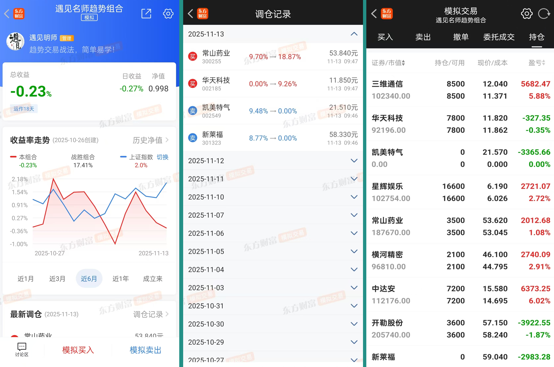 趋势交易法短线波段账户,今日净值曲线、调仓、持仓。#遇见明师趋势交易#