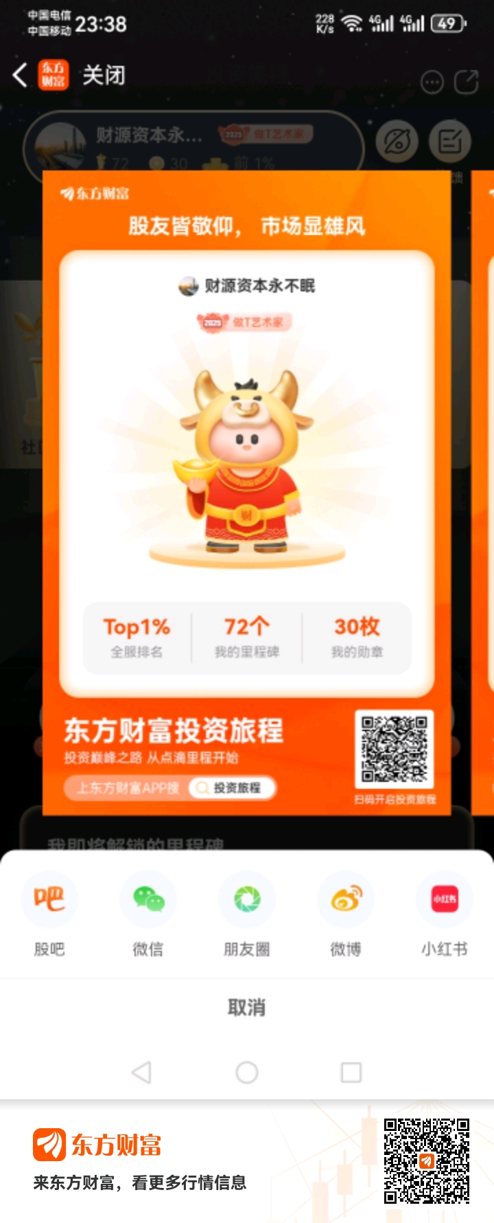 温馨提示: 1.根据《证券法》规定,禁止编造、传播虚假信息或者误导性信息,扰乱证券市场;2.用户在本社区发表的所有资料、言论等仅代表个人观点,与本网站立场无关,不对您构成任何投资建议。用户应基于自己的独立判断,自行决定证券投资并承担相应风险。《东方财富社区管理规定》