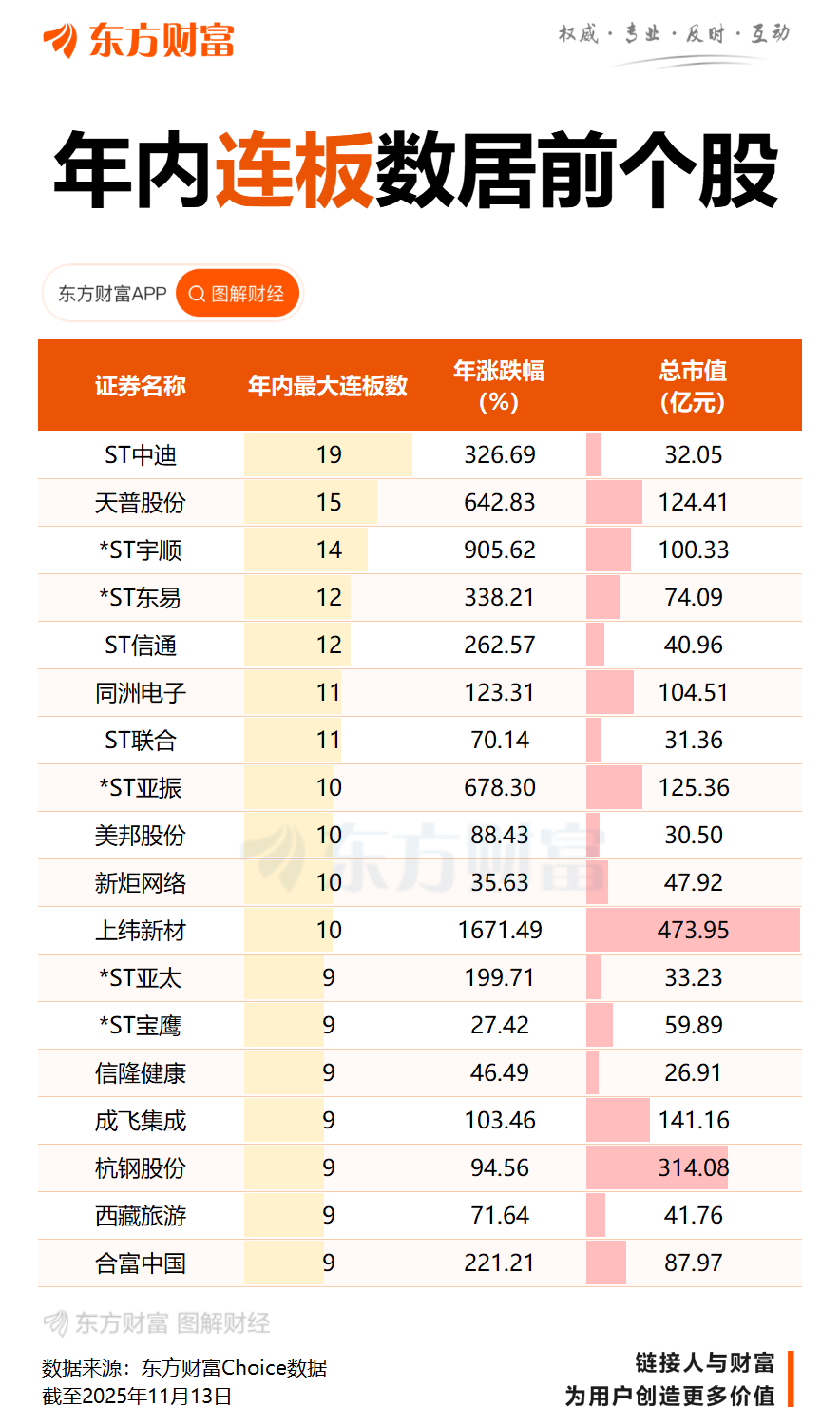 数据显示,11月13日,合富中国再次涨停,走出13天12板,最新市值为88亿元。10月以来,公司股价累计涨幅达244.24%。