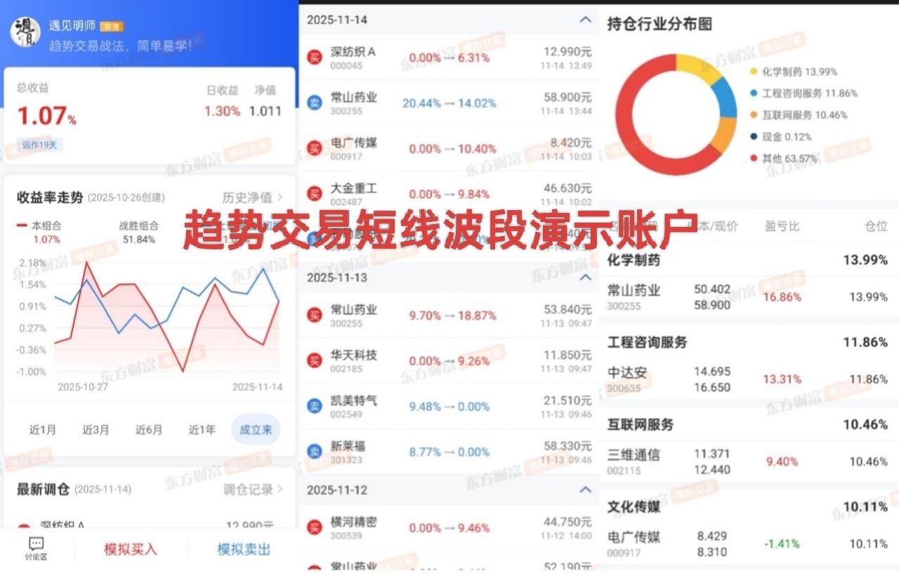 今日短线波段账户净值曲线,调仓,持仓。#遇见明师趋势交易#
