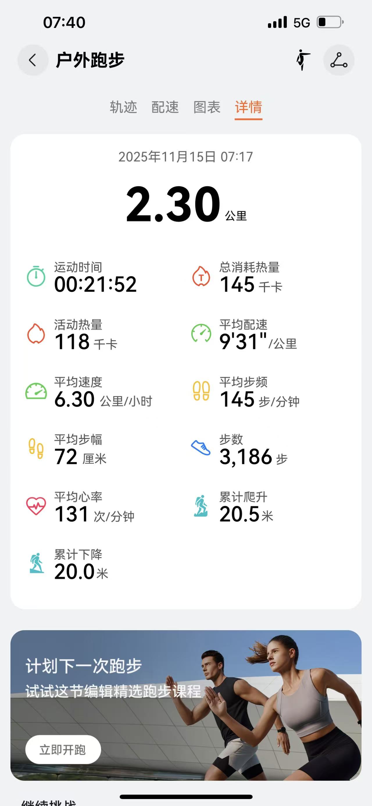 慢跑:2.30公里,累计慢跑:1161.55公里