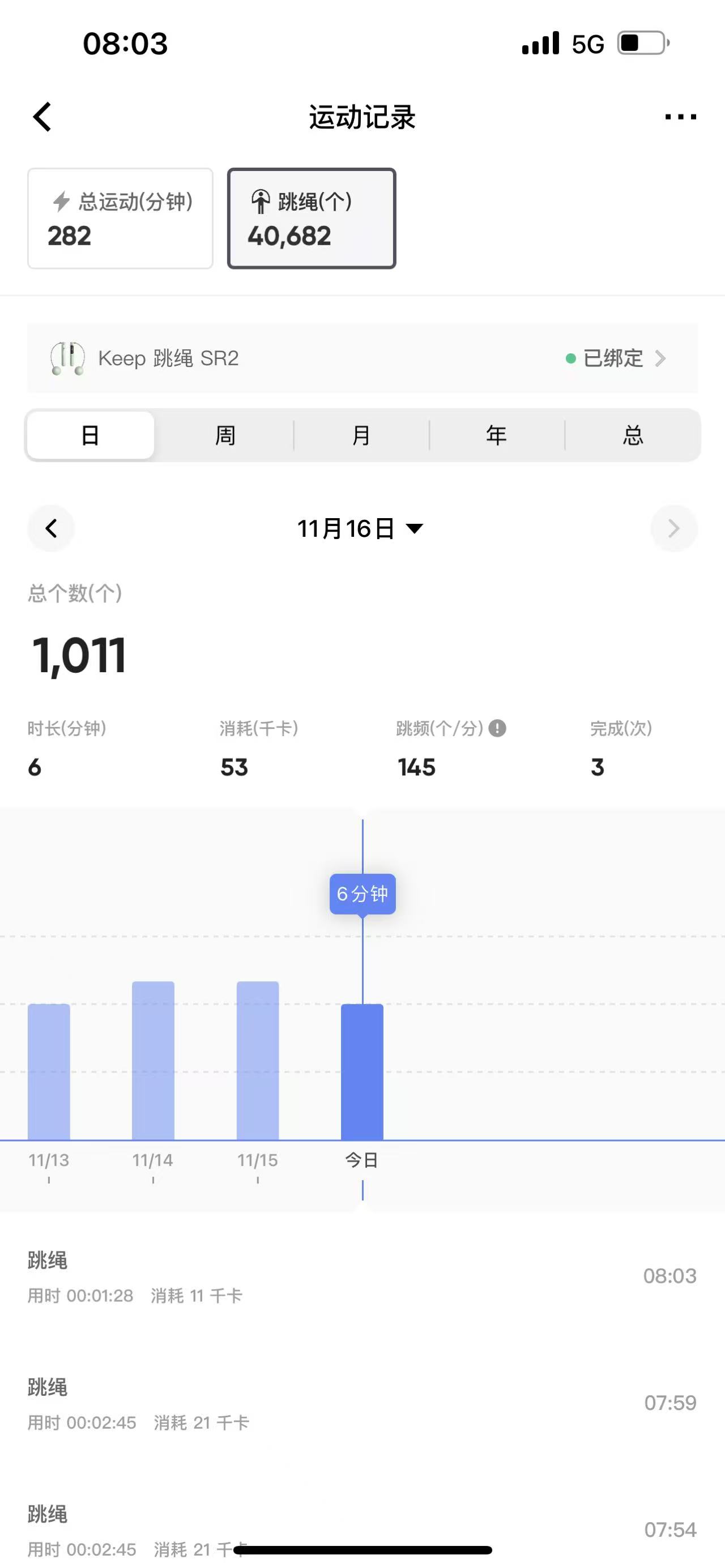 运动与投资第368天2025年11月16日今日定投:周末,没有定投跳绳:1000