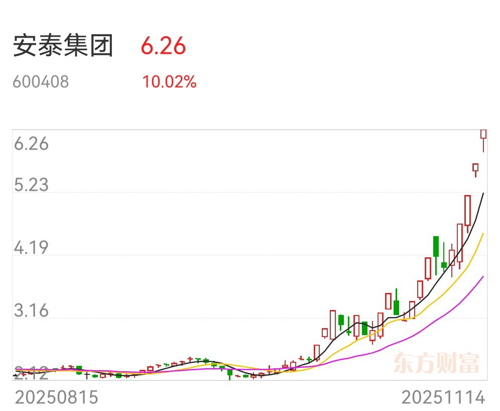 安泰集团 (600408) 约 43.13 (流通值) 山西山阴 煤炭+国企改革 4连板 地方国企