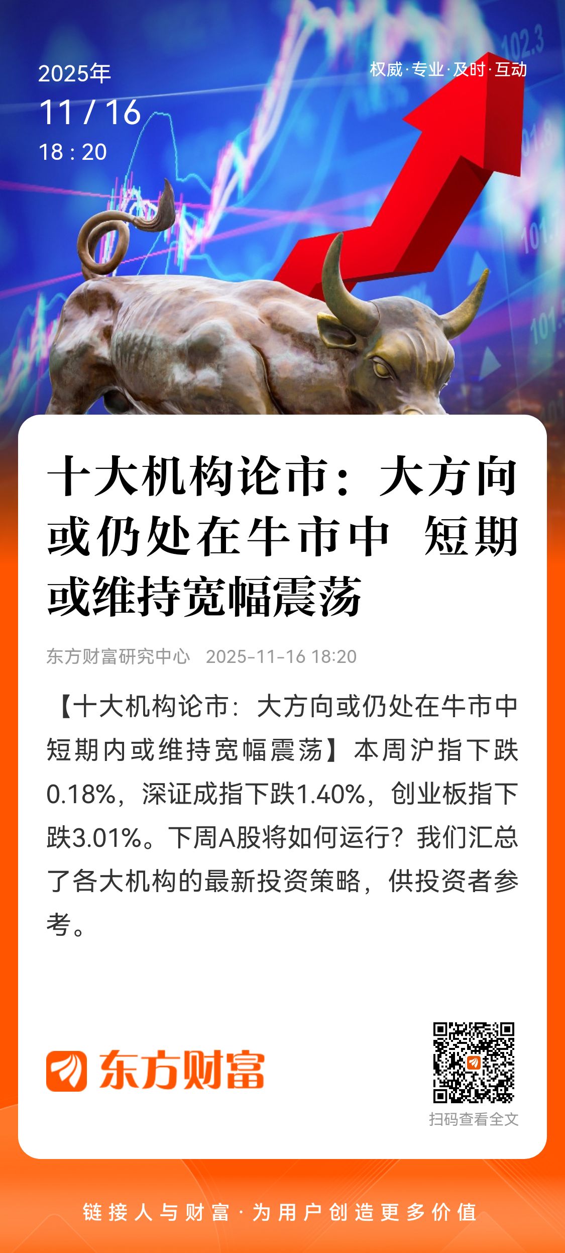 本周沪指下跌0.18%,深证成指下跌1.40%,创业板指下跌3.01%。下周A股将如何运行?我们汇总了各大机构的最新投资策略,供投资者参考。