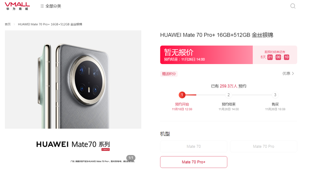 2、华为Mate系列新机将于11月26日正式亮相,目前Mate70系列新机预约人数超过了250万。