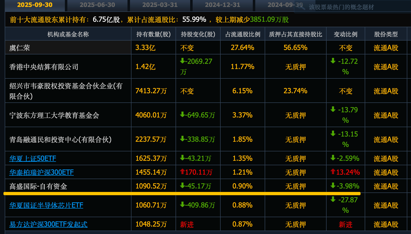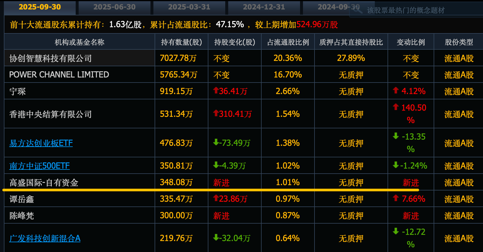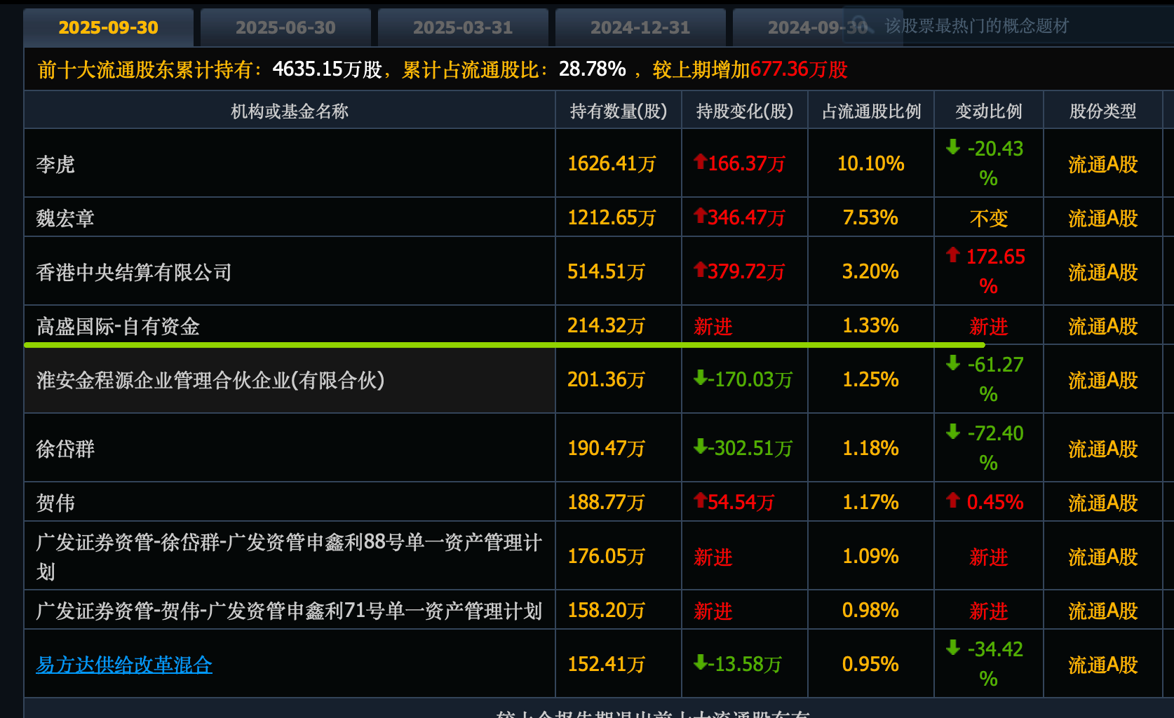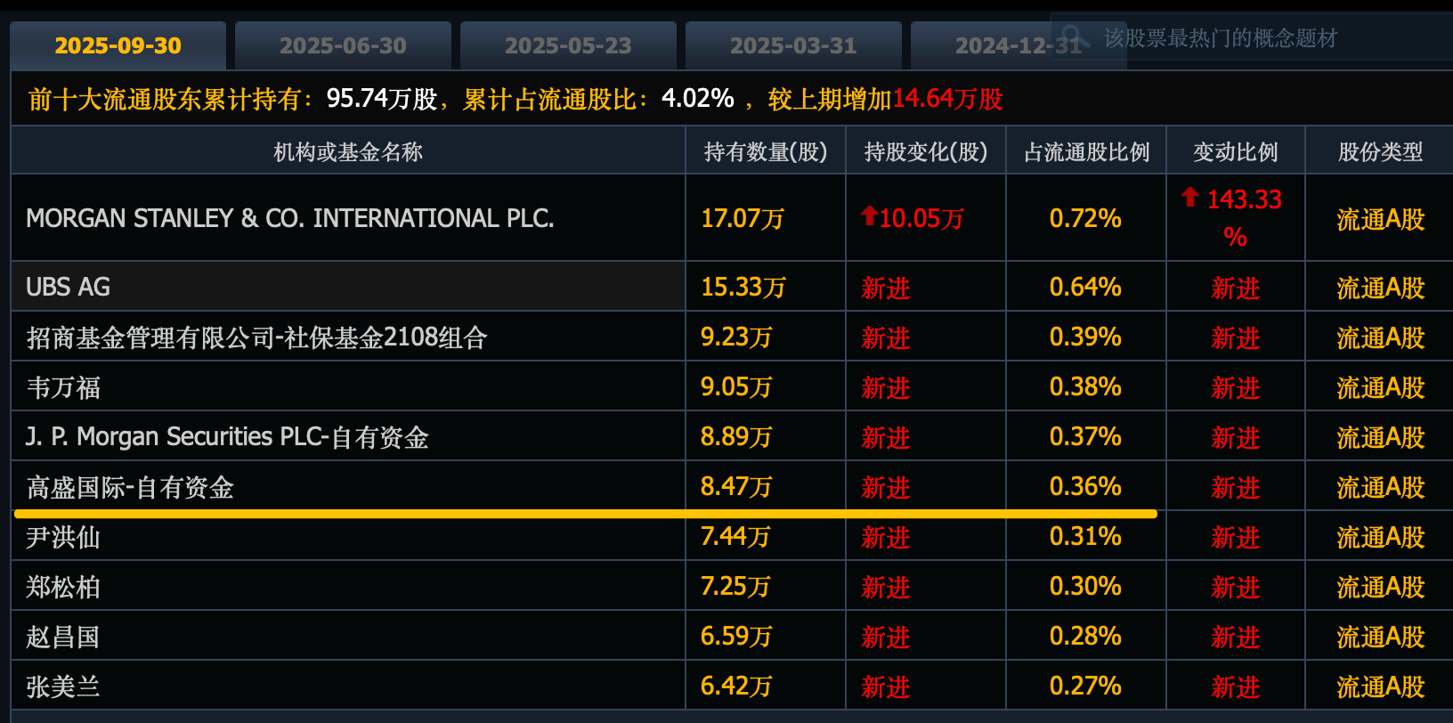 高盛新进348万股,位列第七大股东。