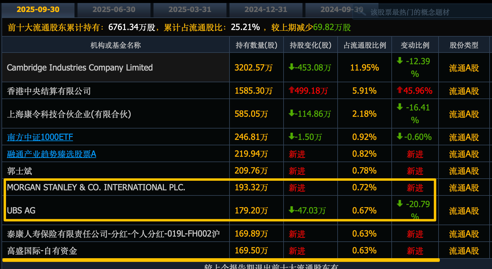 高盛刚刚新进170万股,摩根士丹利新进入193万股,瑞银新进179万股。