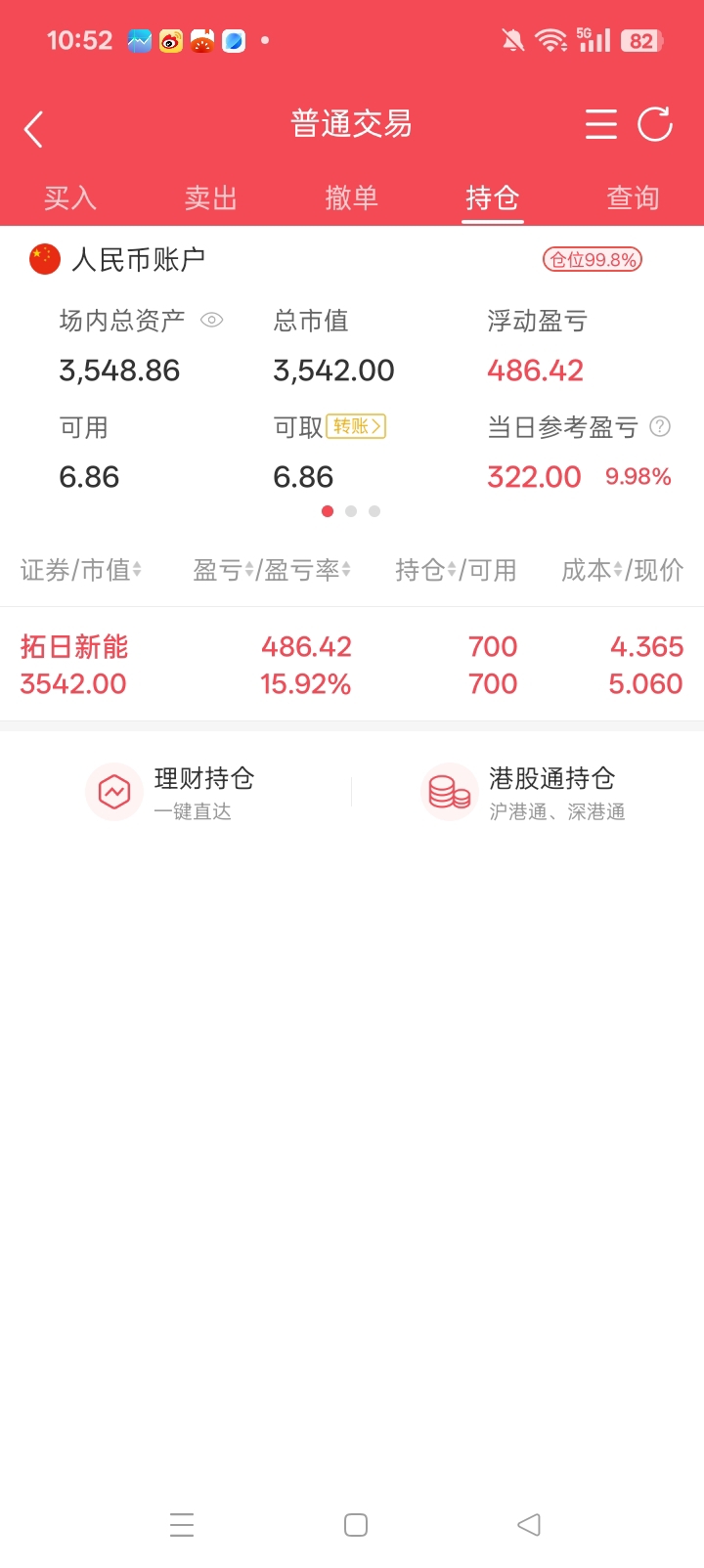 出金200,早盘开盘涨停价没卖掉,因为想做个日内T,没卖掉之后就没再涨停价卖,所以今天日内底仓做T没成功就持仓不动了,季线新能应该突破10,但我估计我自己拿不到,因为我只做日内涨停板或者连续涨停板回调几根阴线后买入,自选股里全是涨停跟主力建仓的票,只做高风险票,因为我自己十年前做职业股票T0出身,赚到后转战期货亏完,如今从新做回股票,目标一个小太阳,不管盈亏,百分百天天晒