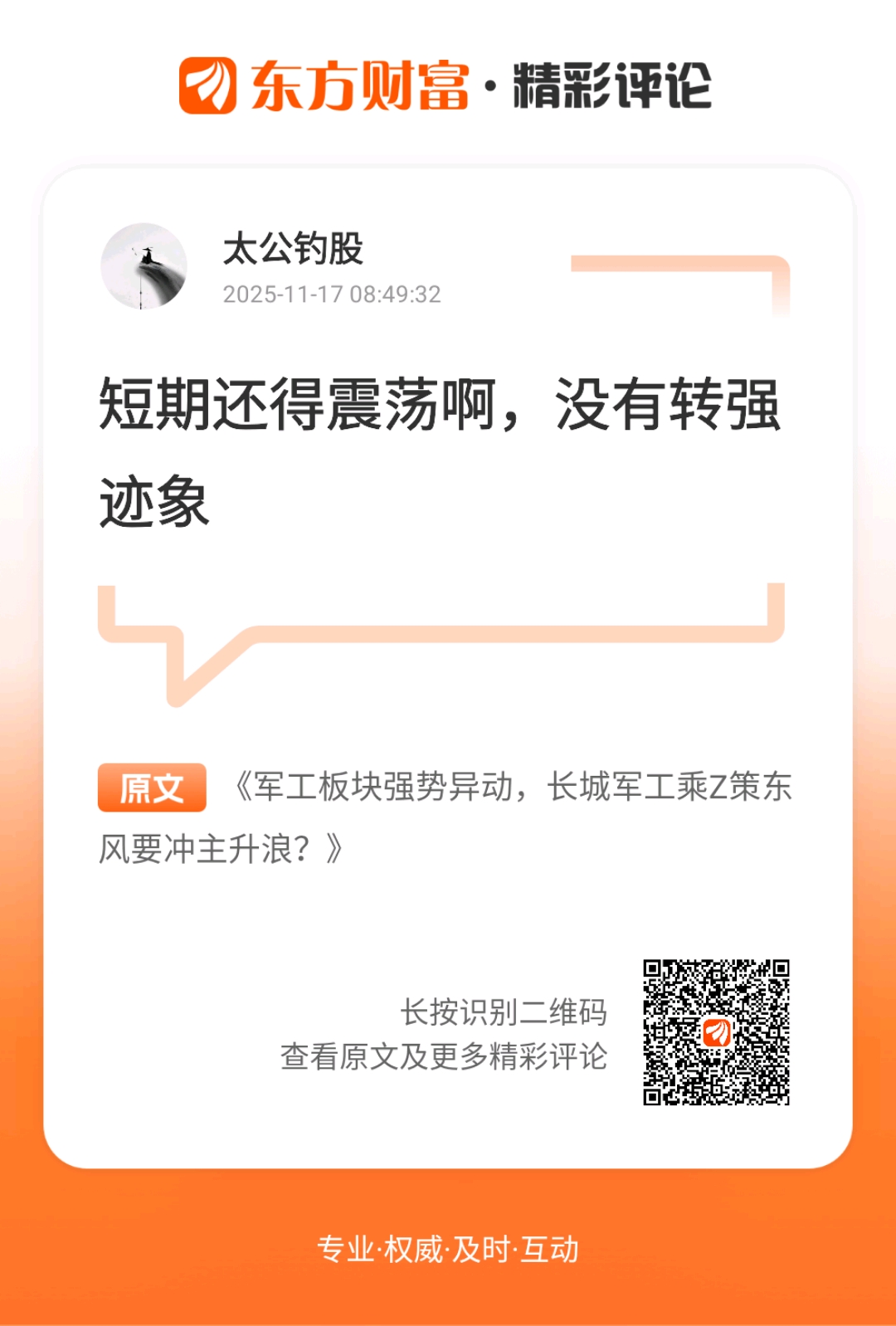 长城军工是兵装集团旗下的核心骨干!在炮弹、单兵火箭等弹药装备领域稳稳占据重要地位,军工属性硬核拉满。近期这走势也够提气,经历短期调整后直接强势反攻,股价放量突破震荡区间,姿金抢筹痕迹特别明显,多头趋势正一步步强化。消息面更是利好扎堆,G际局势紧张让军工板块关注度持续升温,叠加兵装重组预期不断升温,行业需求也在稳步释放。技术面上看,反弹动能给得很足,量能放大也印证了姿金的信心,板块风口和重组预期形成完美共振,今天大概率能延续强势,进一步打开上涨空间。$长城军工(SH601606)$