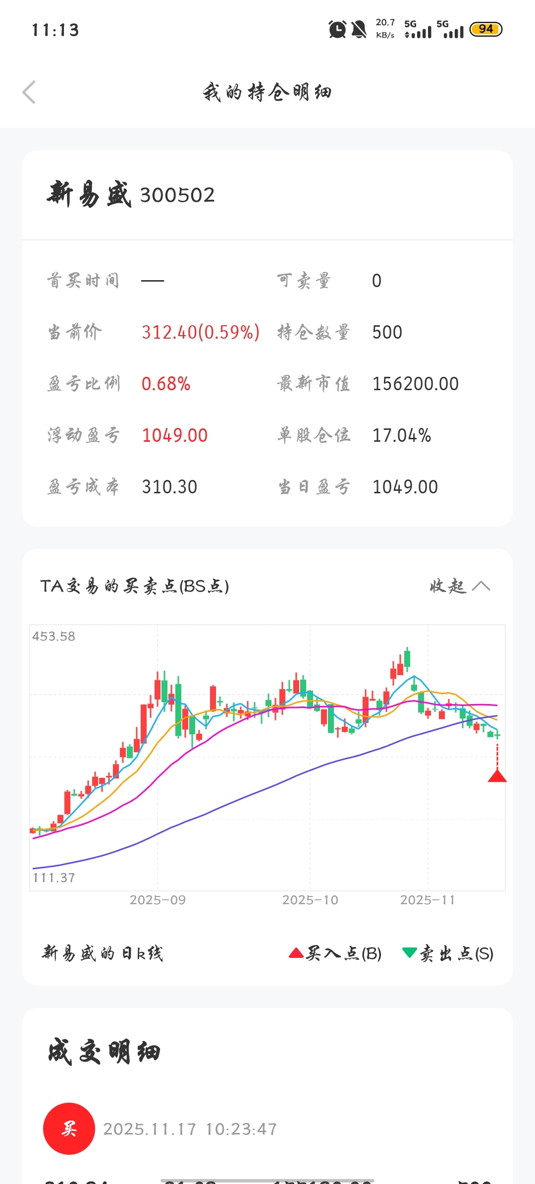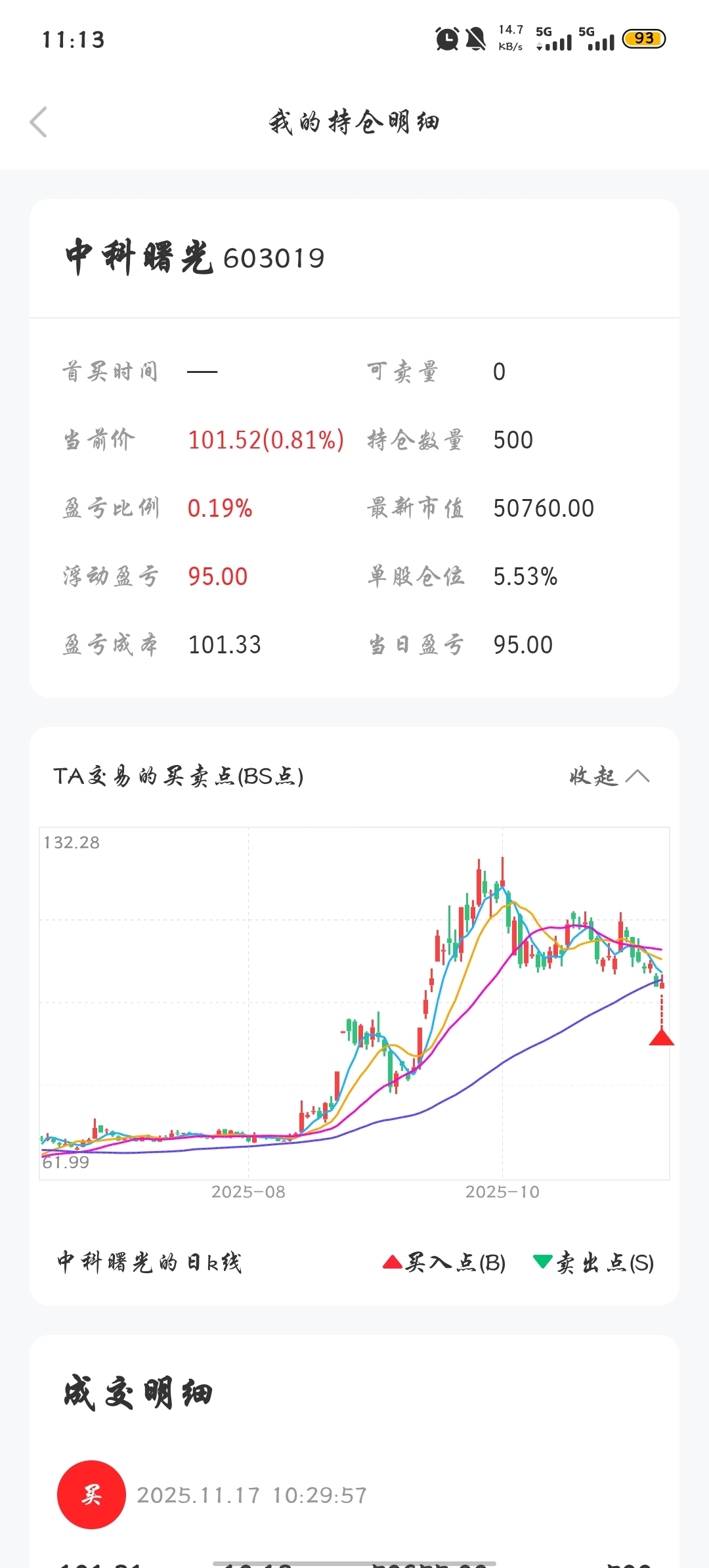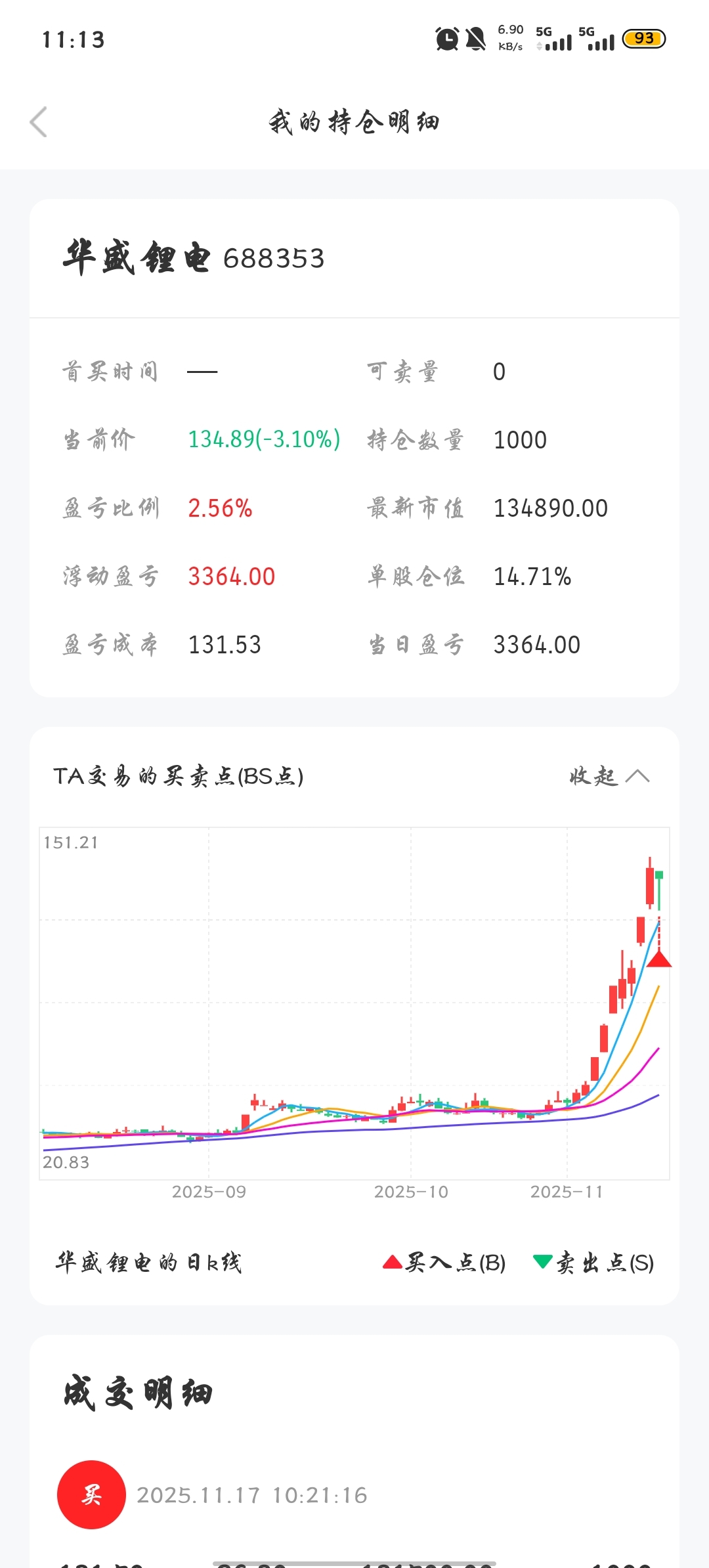 技术面看:11月以来沿5日均线走出“小碎阳+大阳线”加速形态,今早回踩130元支撑位(成本131.53),属于“趋势加速段的低吸买点”,目前浮盈2.56%。