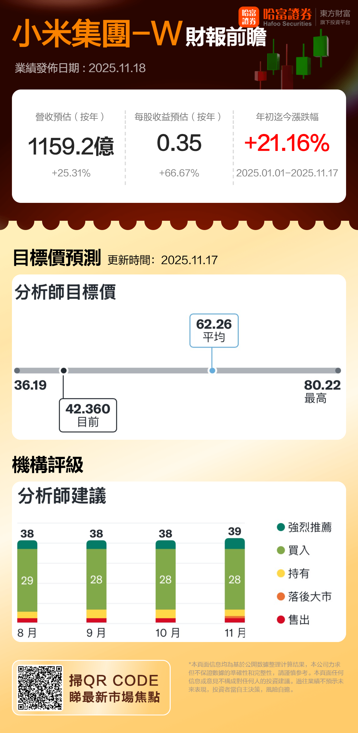 小米集团将于北京时间11月18日发布财报,2025Q3预计实现营收1159.2亿元,同比增加25.31%;预期每股收益0.35元,同比增加66.67%。