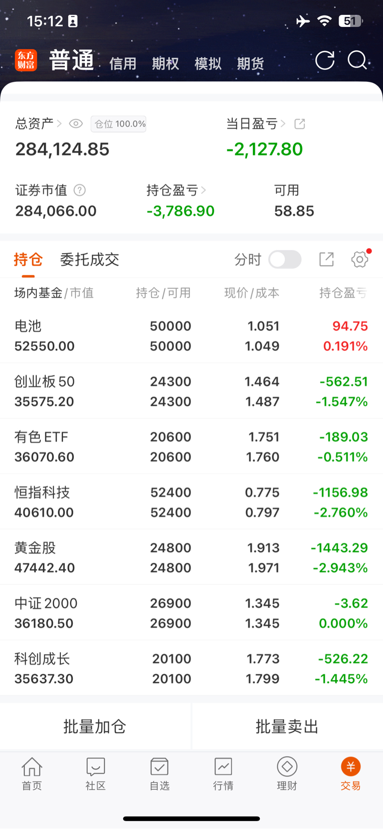 今天市场整体调整,ETF组合也跟着调整,小跌1个点左右,问题不大,继续持有,跟车的可以抄我的底了。
