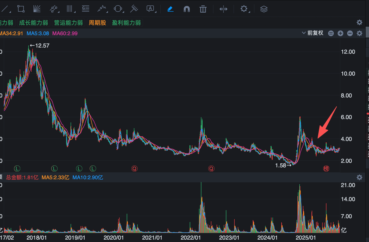 牛散张素芬依旧是钟爱低价股,就在刚刚,牛散张素芬新进了一个股价低至3元的龙头,这个股票从2017年开始股价从13元一路暴跌到3元,今年业绩开始暴雷,但是股价基本没怎么跌了,于是牛散张素芬出手,最近指数新高,张素芬暂时被套了。