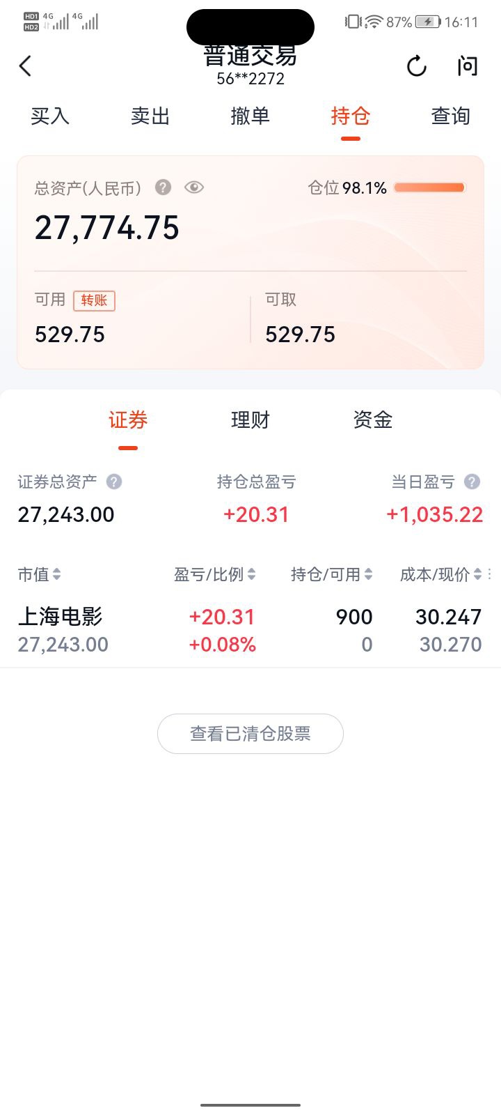 转入5500 本 27500 加了2手 T了9分 成本降了3毛6
