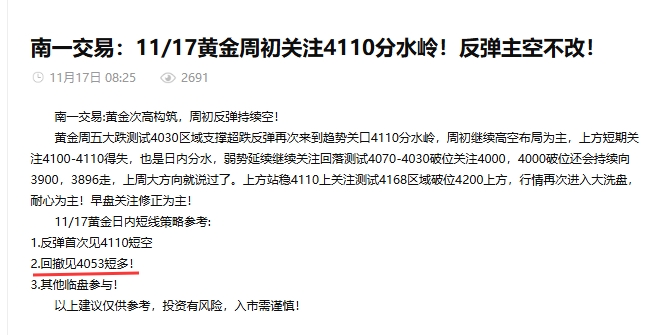南一交易:黄金短期持续进入整理,欧美继续关注4110-4050趋近整理反复!今日