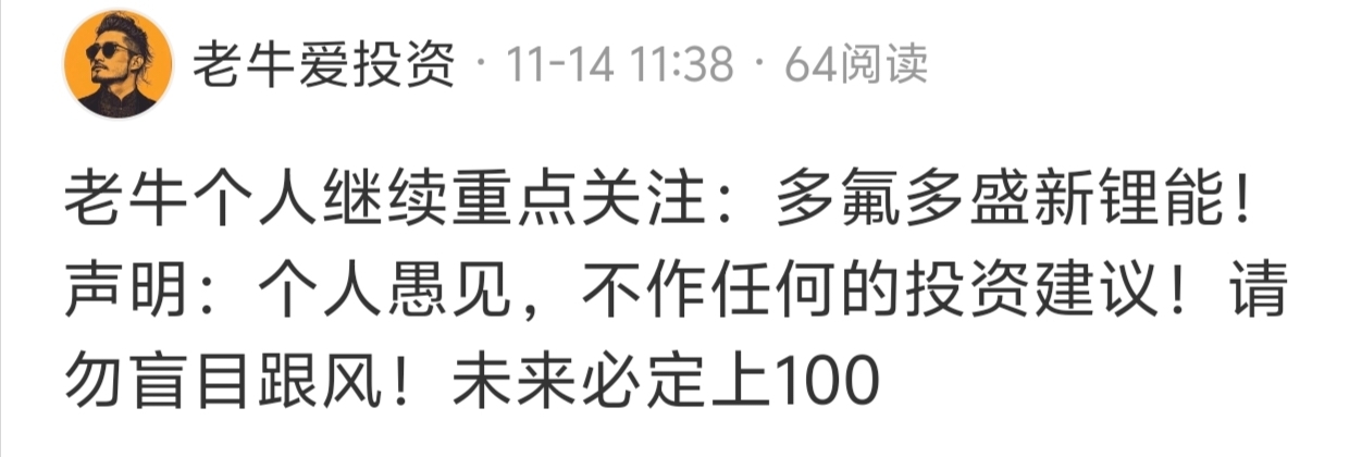 记录老牛个人投资笔记!2025年11月17日更新!盟固利—德方纳米—盛新锂能!继