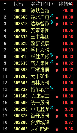榜上有名(来源:前期短线资金数据):