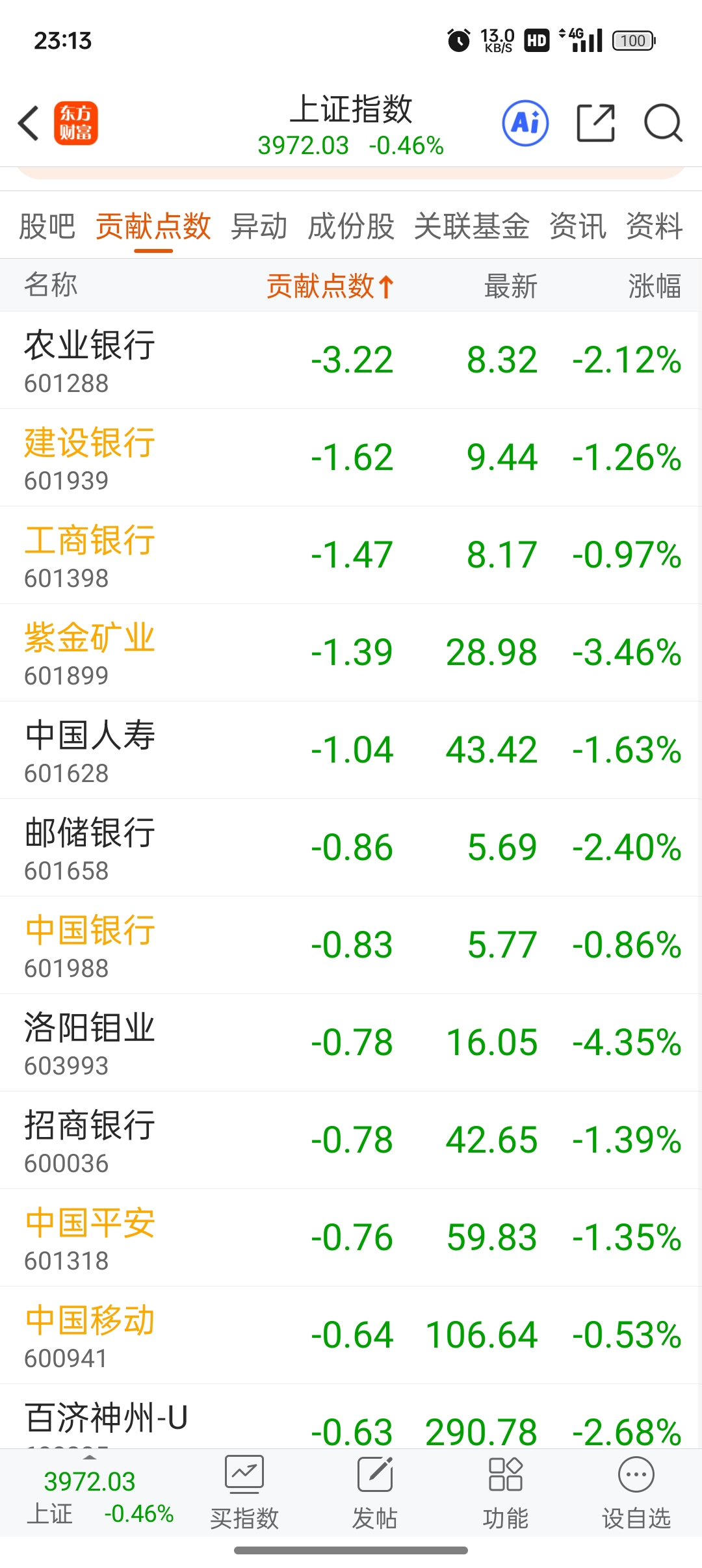 今天百股涨停,而大盘是绿的,为啥?因为上周五王小雨买了农业银行,依旧实力在线,一人代跌整个银行板块和大盘,,