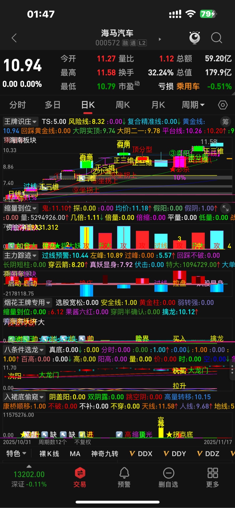 目前只剩下没有处罚异动监管的海马汽车,它成为备胎活口。那么周二就看海马竞价自己争不争气了,已完成震仓洗盘,收了个高量假阴,还在高量安全线之上,底分型正三维,天线在人线上方,低开的话可以考虑深水低吸