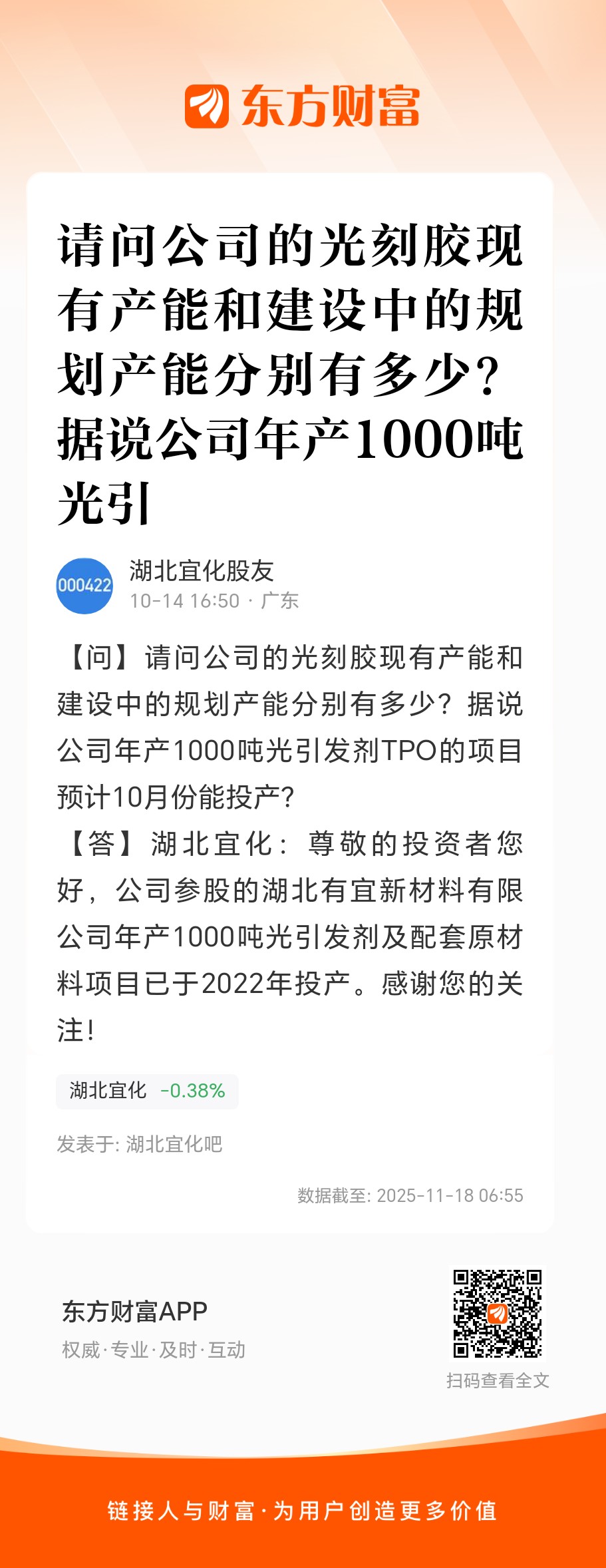 请问公司的光刻胶现有产能和建设中的规划产能分别有多少?据说公司年产1000吨光引发剂TPO的项目预计10月份能投产?