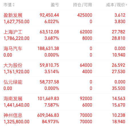 海马汽车000572:海南自贸区。海马今天表现比预期的好,周五尾盘炸板,盘前还担心开盘就砸盘下挫,没想到居然高开;盘中看着多次冲高无力,这边就先止盈撤退了。后续走势不好判断,赚自己有把握的利润就好。