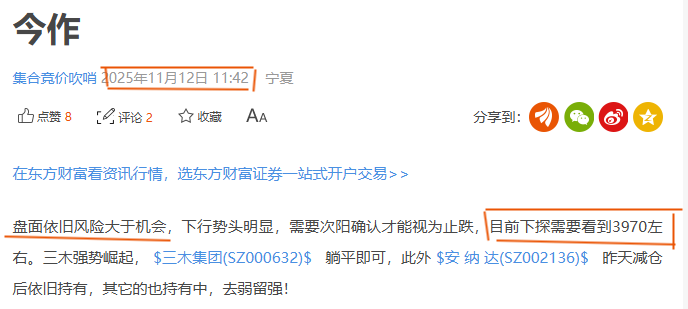 仓位控制不好的朋友大概率都过的不是很舒服,割肉太疼,持有又难受,开新仓也没有仓位反而还会进一步加剧仓位压力,有些朋友甚至已无仓位可加,重仓或者满仓状态,竟哥是在11月12日提醒大家要注意风险,控仓前行,会有回调预期并且明确给到可能的回调点位是3970左右,而且这里还不一定是回调结束点位,后期在发文也是反复强调继续保持控仓!控仓!有风险意识的朋友应该会有动作吧。