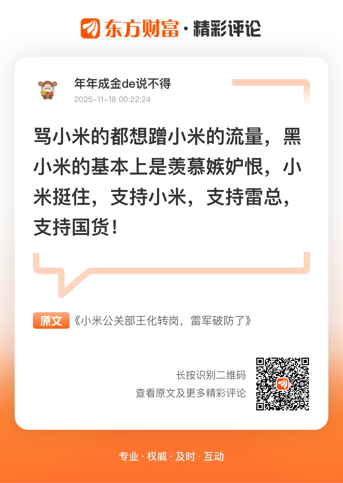 10月份,雷军终于坐不住了,他对此做出了回应,呼吁行业以安全为基础、质量为根本、创新为方向,集中资源推动底层技术研发,同时抵制网络水军、黑公关等不良竞争。