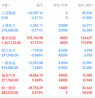 持仓:昨日出三花智控,进统一股份。