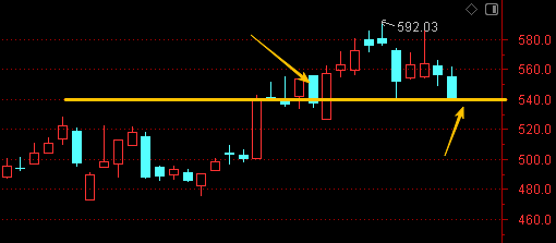 而今天这么一回落,光伏板块的洗盘,大概要结束了。技术面,光伏板块正好走到强支撑540点一线。