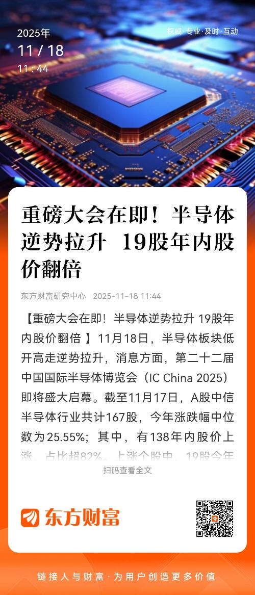11月18日,半导体板块低开高走逆势拉升。截至早间收盘,龙迅股份20CM涨停,东芯股份、京仪装备、明微电子涨超10%,大为股份涨停,源杰科技、晶晨股份涨超8%,北方华创、路维光电、中微公司、芯源微等多股涨超5%。