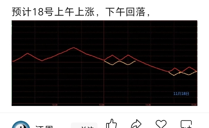 今天除了上午高度有误差,其它都一模一样,转折点时间和趋势都一样。如果没有高市早苗的言论和外围大跌影响,应该就能跟上午的预测高度一样了吧。