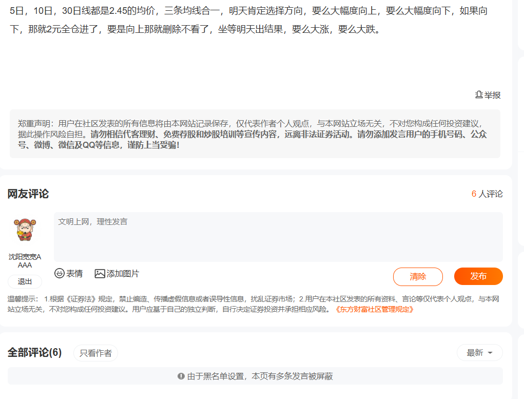 温馨提示: 1.根据《证券法》规定,禁止编造、传播虚假信息或者误导性信息,扰乱证券市场;2.用户在本社区发表的所有资料、言论等仅代表个人观点,与本网站立场无关,不对您构成任何投资建议。用户应基于自己的独立判断,自行决定证券投资并承担相应风险。《东方财富社区管理规定》