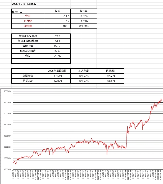 2025.11.18周二今天-11.6w(-2.37%)2025年+103.3w