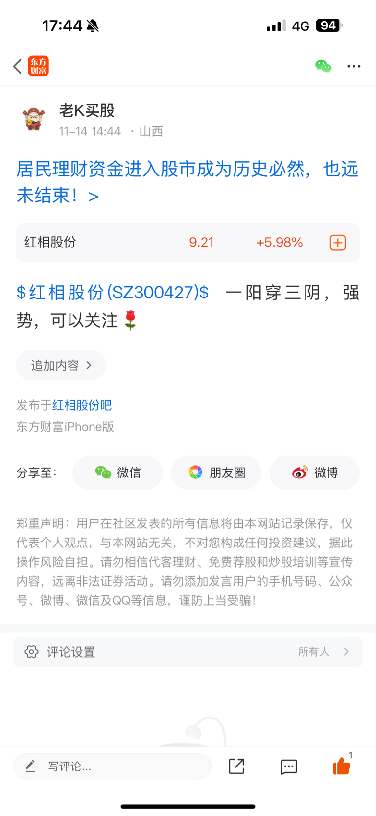 温馨提示: 1.根据《证券法》规定,禁止编造、传播虚假信息或者误导性信息,扰乱证券市场;2.用户在本社区发表的所有资料、言论等仅代表个人观点,与本网站立场无关,不对您构成任何投资建议。用户应基于自己的独立判断,自行决定证券投资并承担相应风险。《东方财富社区管理规定》