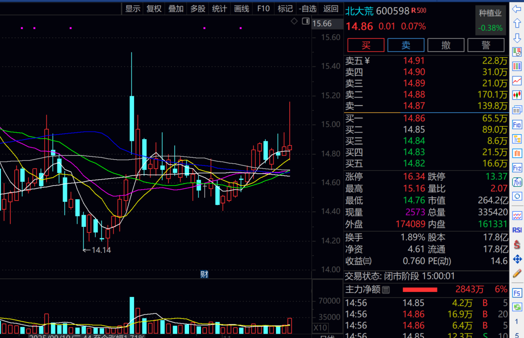北,D,荒,未动,$北大荒(SH600598)$ $上证指数(SH000001)$