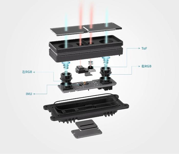 值得一提的是,部署了端侧AI深度模型的双目RGB模块,可精准识别透明水瓶、玻璃门等ToF难以识别的物体;而ToF模块则能辅助双目RGB模块在暗光、强逆光、无纹理等识别受限场景下的真实、准确的深度真值数据输出,二者协同互补,进一步拓宽了方案的适用场景。