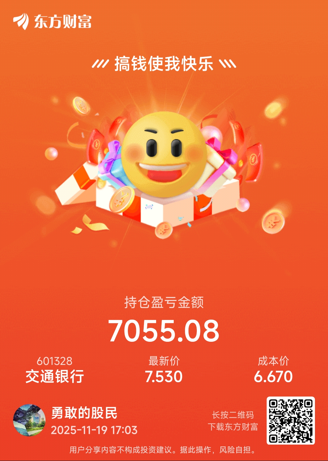 #复盘记录# 10月9号卖出工商银行8000股买入交通银行8600股,11月10号由于涨幅达到10%卖出小部分利润400股,目前持有交通银行8200股。浮盈7000左右。