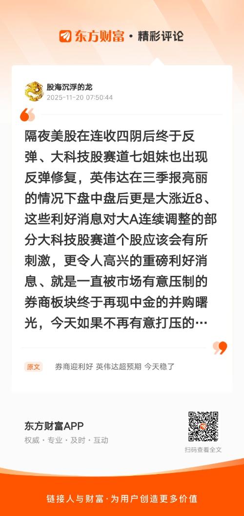 我在《券商迎利好 英伟达超预期 今天稳了》的评论获得了大家的关注。