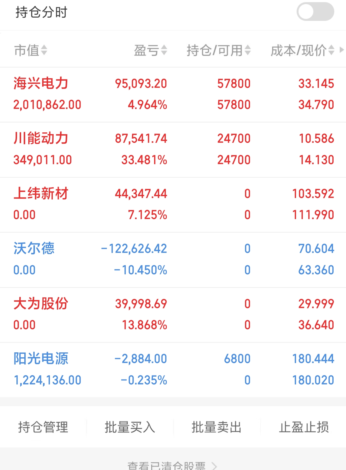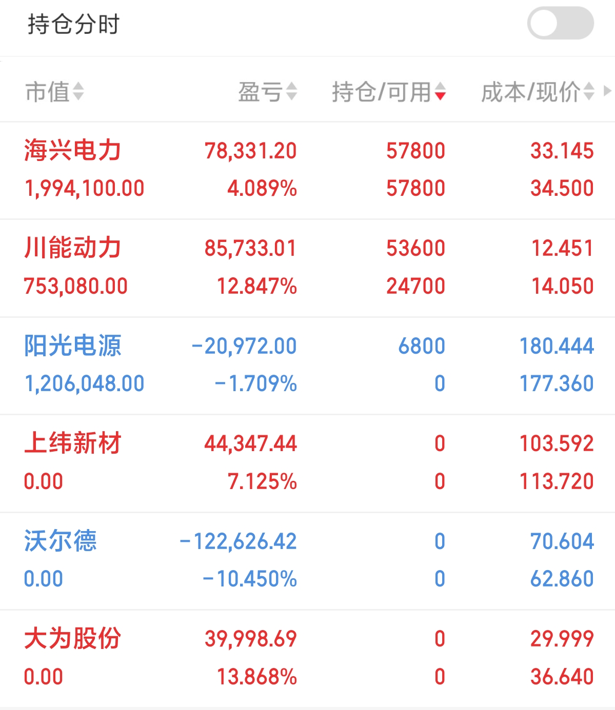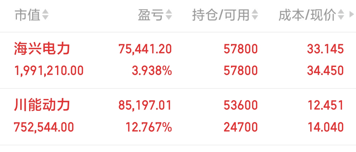 川能动力加了一笔重仓,做T1。海兴电力保持