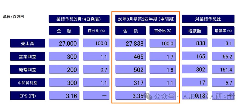 2504/2603财年H1,来自北美人形机器人大客户的订单增长显著。其中Figure订单指引明确,即将进入量产周期,预计2026年产能规模同比增长3倍(~3,000台)。