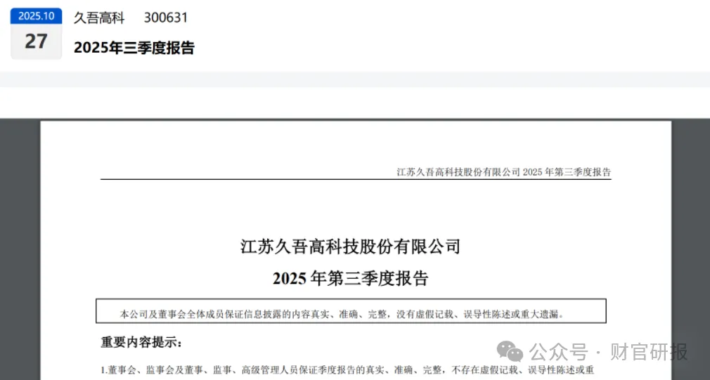 我是财官,一个喜欢从财报数字中寻找真相的观察者。今天我们要解开的谜题是:久吾高科。$久吾高科(SZ300631)$