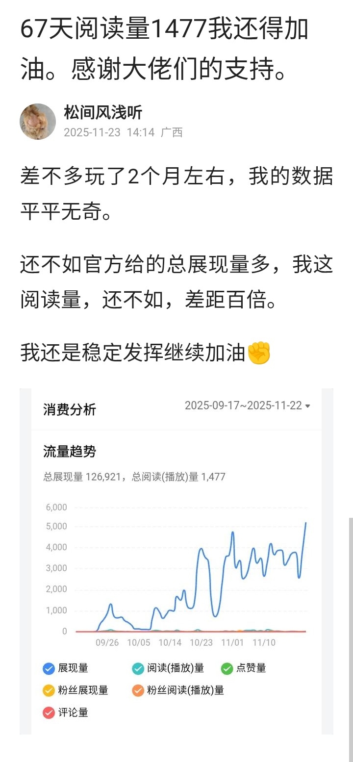 目前稳定发挥,一天大概平均增加粉丝,0个,1个3个继续加油
