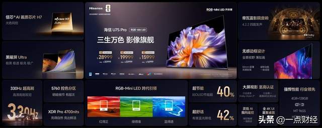 价格方面,海信U7S Pro已全面开启预售,预存1000元可抵2000元,75英寸新品首发价15999元,85英寸新品首发价19999元,100英寸新品首发价28999元。同时,可享能效补贴最高再省2000元,现在预定送1年影视VIP会员。