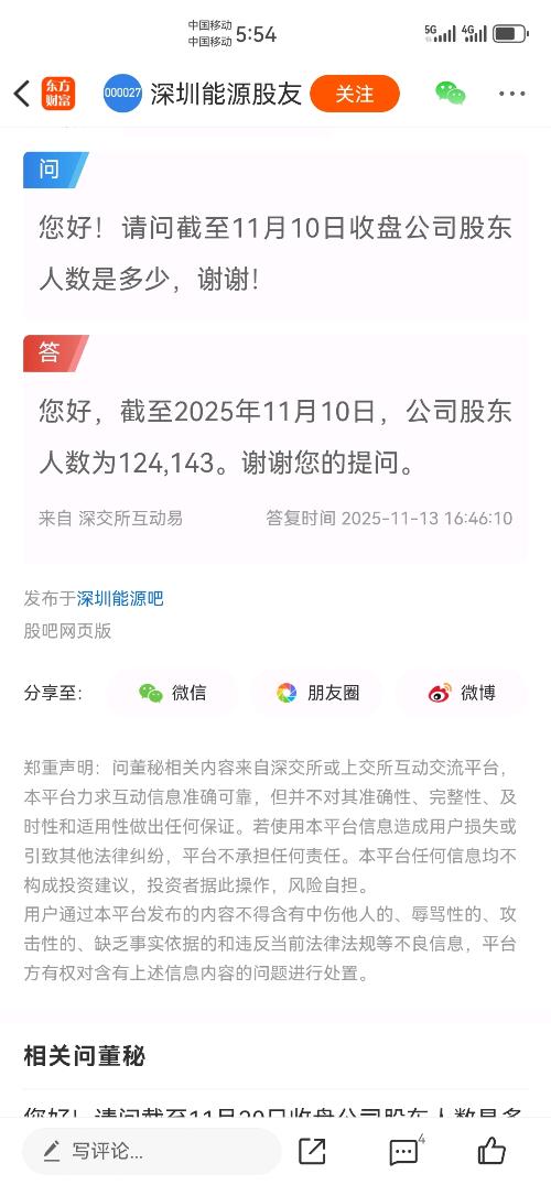 124143-120134=400910天过去少了4009户您好!请问截至11月20日收盘公司股东人数是多少,谢谢!答您好,截至2025年11月20日,公司股东人数为120,134。谢谢您的提问。来自 深交所互动易答复时间 2025-11-24