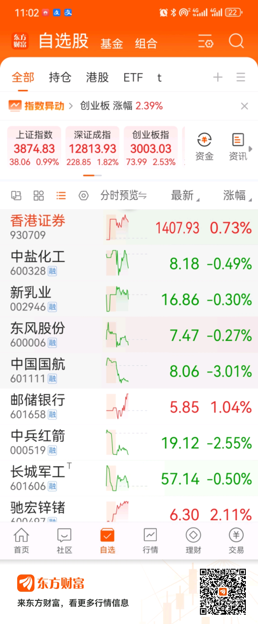 #强势机会# 为什么我选的股跟大盘走势相反了,怎么自选股里面这几个哎呀,基本上都绿了。