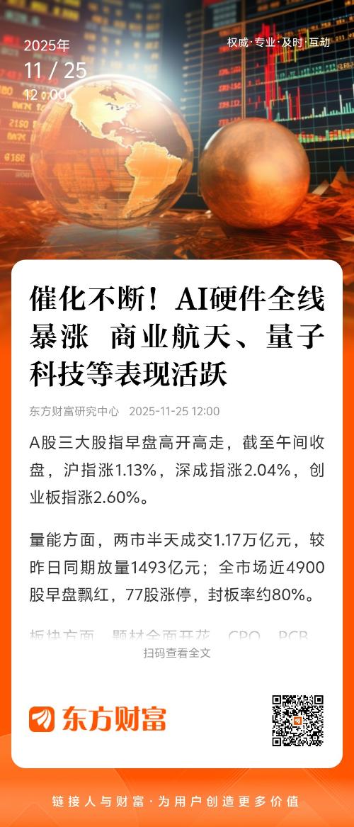 除了AI硬件,商业航天、量子科技、流感概念早盘也涨幅居前,光库科技、福晶科技、航天环宇、特一药业、华兰疫苗等多股涨停。