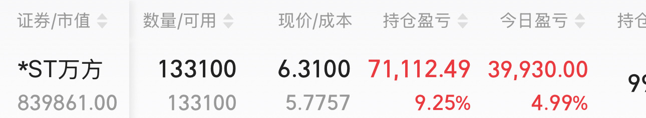 其实大盘还好,今年有望冲击300%的收益,上周四进的万方,现在越补成本越高,从30多万补到70万,今天本来还想补的,涨停了,没机会