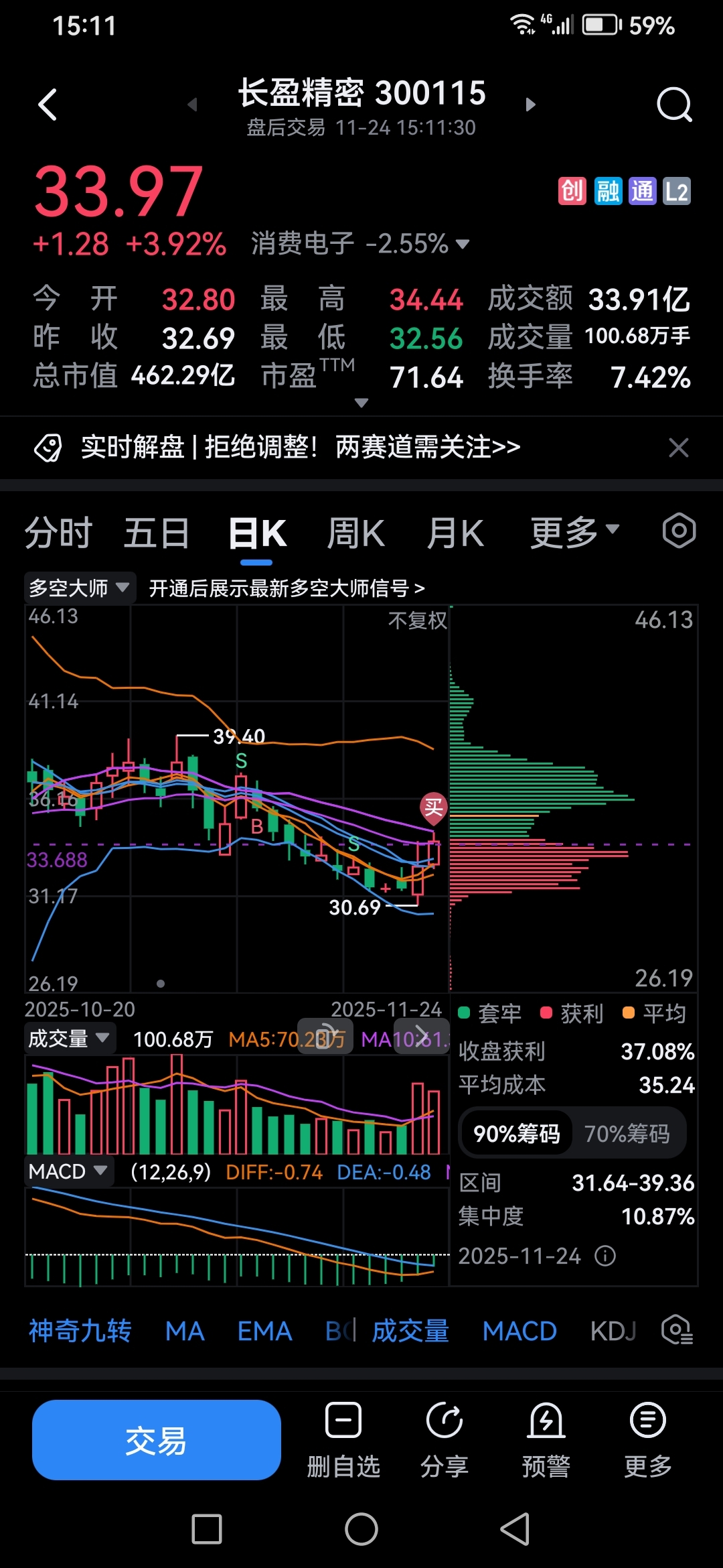 11月26号星期三交易记录洗盘到位的.蓝色光标今天洗盘非常成功的未来大牛股:00